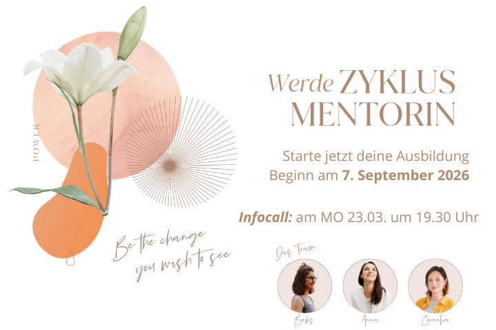 Du interessierst dich für die Ausbildung zur Zyklusmentorin? Im Infocall erhältst du Antworten auf deine Fragen und wirst über Ablauf und Inhalt informiert.